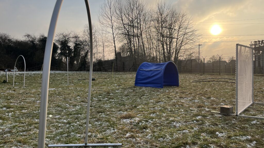 Hoopers ist eine gelenkschonende Beschäftigungsform, bei der der Hund einen Parcours aus Bögen, Tonnen und Gates durchläuft. Der Hund arbeitet dabei auf Distanz, während der Mensch ihn ausschließlich über Körpersprache und verbale Signale lenkt. Im Vordergrund stehen Konzentration, Teamarbeit und Kommunikation – nicht Geschwindigkeit oder Leistungsdruck.